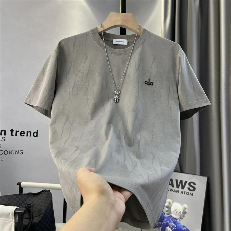 2025夏季新款休闲简约撞色扎染图案设计宽松小众圆领短袖T恤男