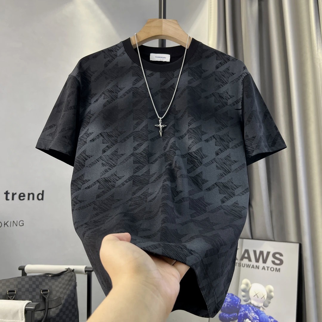 Kaus lengan pendek pria, baju tas warna polos, mantel kerah bulat merek Tide baru 2024
