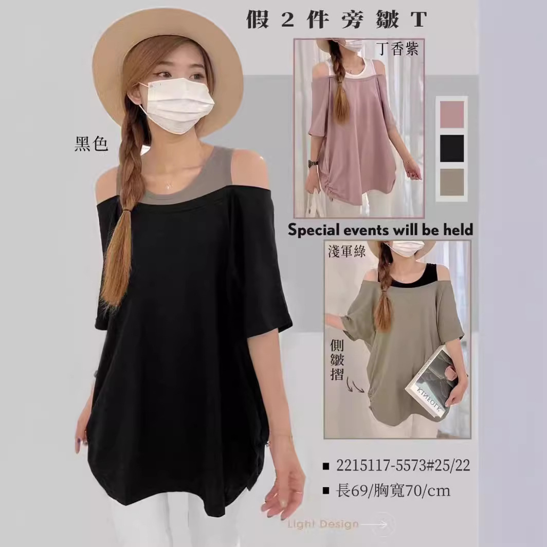 Kaus wanita lengan pendek, Kaus wanita lengan pendek, bahu terbuka, untuk musim panas gemuk, Mm, 300kg, tali pullover setengah, palsu, ukuran besar, longgar