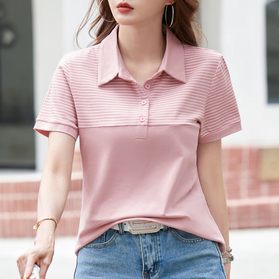 T-Shirt Wanita Lengan Pendek Garis Kerah Terbalik Atasan Dalaman Menutupi Daging Ukuran Besar Longgar Gaya Barat Gaya Korea Model Baru Musim Panas 2025