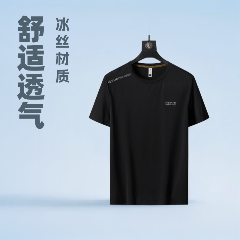 T-Shirt Lengan Pendek Model Baru Musim Panas T-Shirt Olahraga Sutra Es Jaring Ukuran Besar Pria Rompi Lengan Setengah Kerah Bulat Tambah Besar
