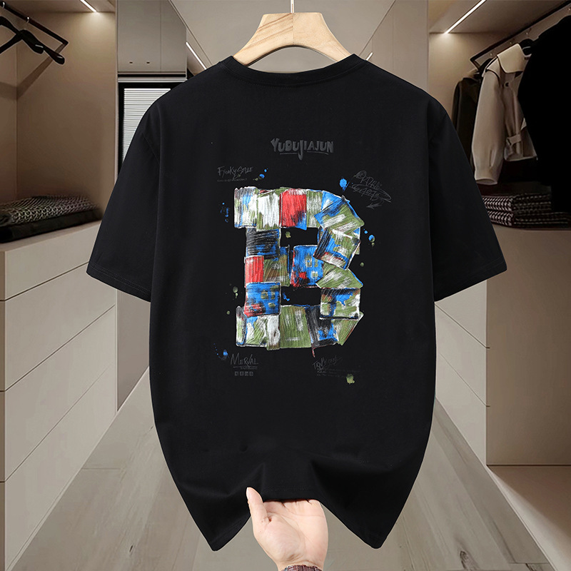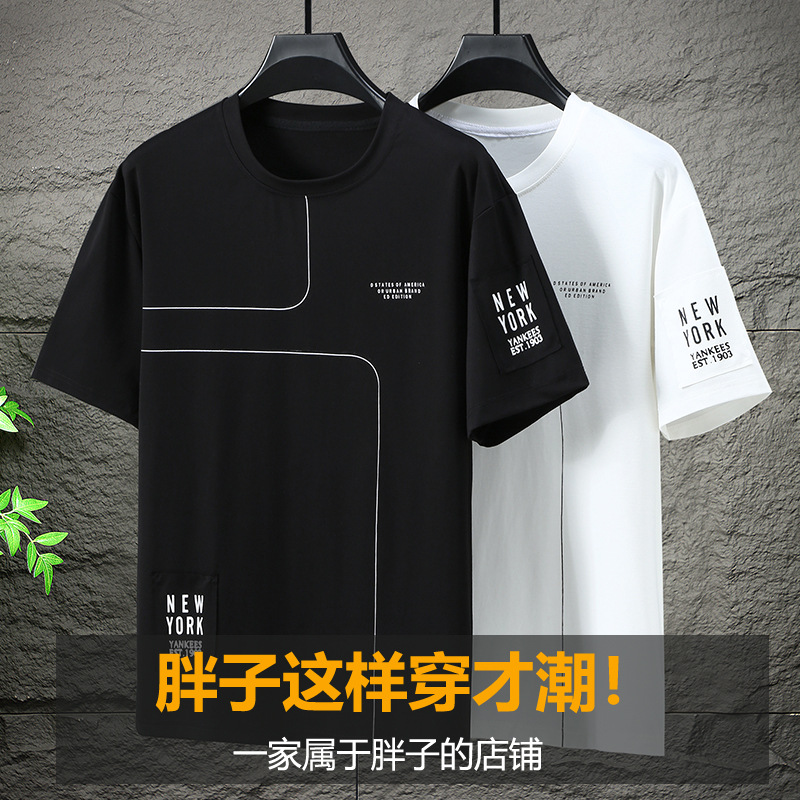 Pasokan yang cukup Musim Panas Model Baru Merek Trendi Lengan Pendek Dicetak T-shirt Pria Ukuran Besar Longgar Ditambah Lemak dan Trendi Gemuk 360Kg
