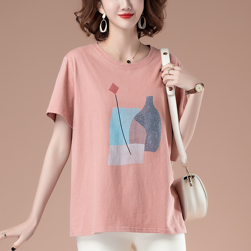Kaus katun lengan pendek, Kaus katun ukuran ekstra besar 300kg musim semi dan musim panas gaya Korea desain pelangsing modis