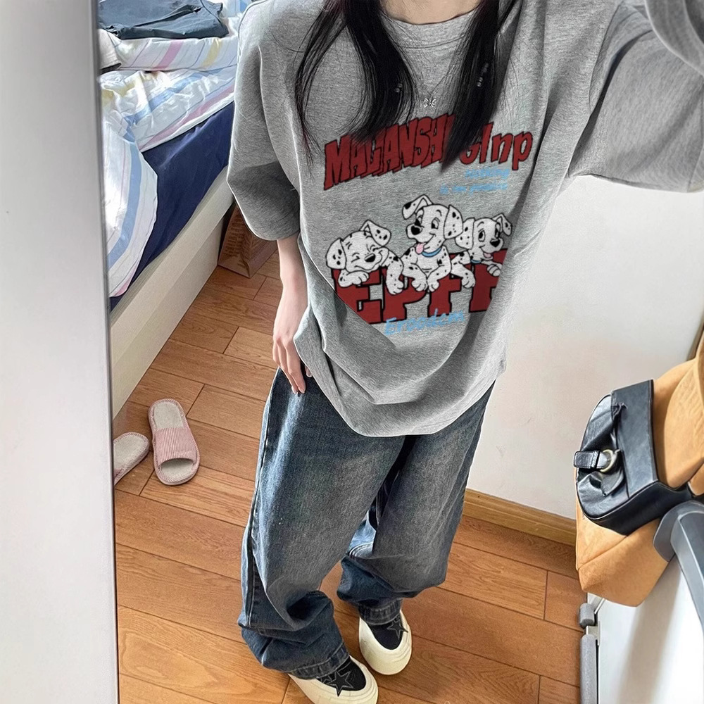 T-shirt Lengan Pendek Merek Trendi Produk Eropa Katun Murni Ukuran Besar Kaus Lengan Setengah Panjang Kartun Gaya Amerika Gaya Desain Baru Wanita