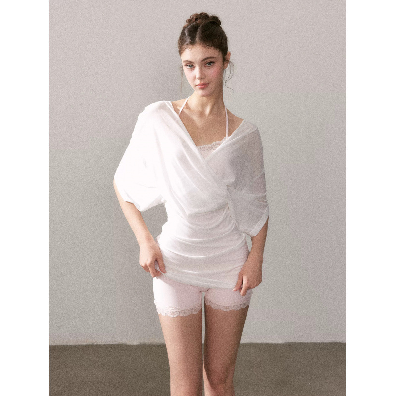 Gaya peri! Kaus lengan pendek crop tipis kerah V 16 wol halus wol halus benang Yangzi sutra murbei + Jerman