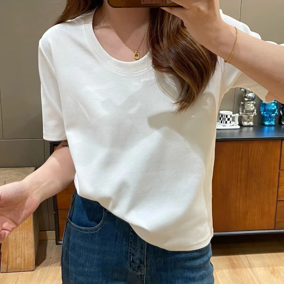 T-shirt Kasmir Kasmir Lengan Pendek Musim Panas Model Baru Musim Panas Kasual Warna Polos Atasan Wanita