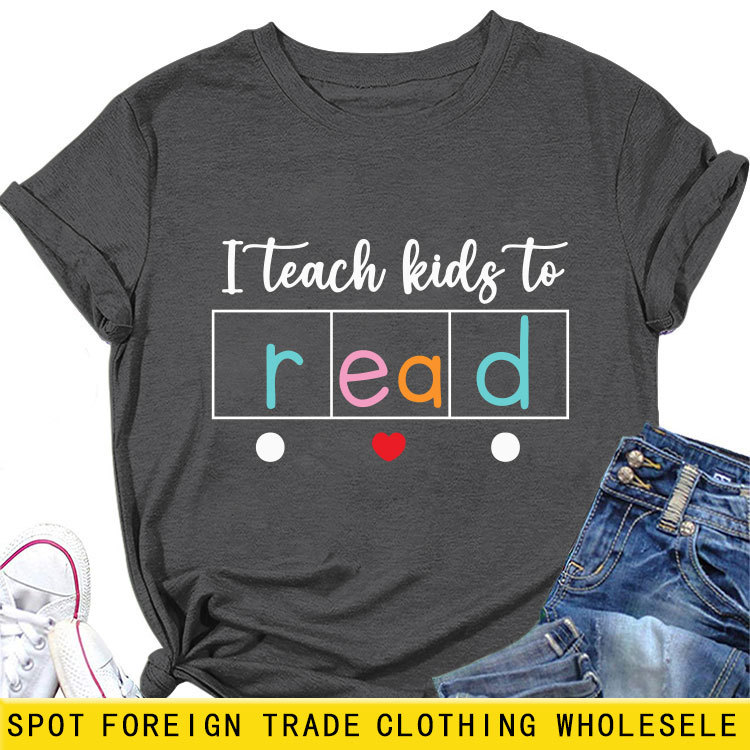 Kaus wanita lengan pendek, gaya Eropa dan Amerika eBay leher bulat lengan pendek saya mengajarkan anak-anak huruf kepribadian kasual ukuran besar perdagangan luar negeri stok