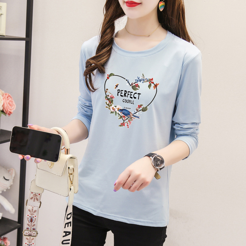 Kaus wanita satu potong, T-shirt Dalaman lengan panjang kasual ukuran besar perdagangan luar negeri cetakan