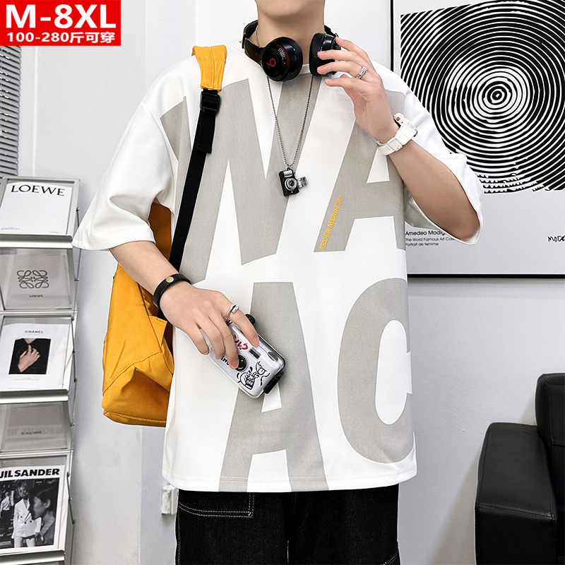 [Lengan Pendek Huruf U] Pakaian Pria Ukuran Besar Model Baru Musim Panas 2024 Kaos Kasual Tambah Tambah Besar Mudah Dipadu Padan Lengan Pendek PB3208