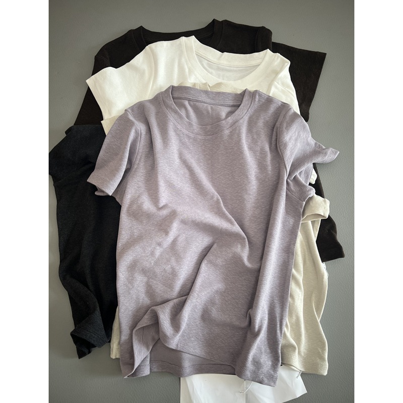 H673 Baju Atasan Padu Padan Terlihat Langsing Ramping Model Tipis Musim Panas Wanita Lengan Pendek Kerah u Katun Murni
