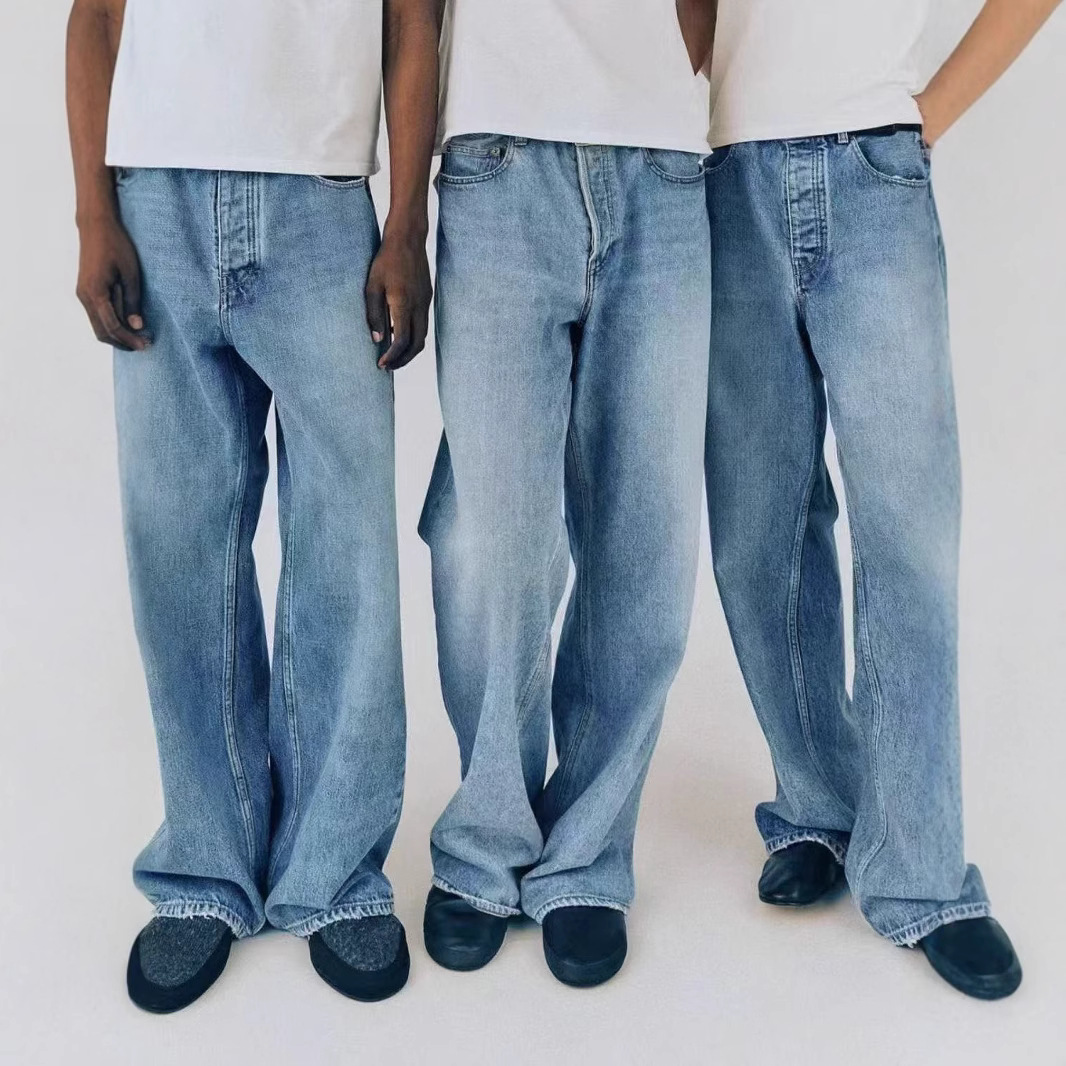 Celana Jeans Musim Semi 2025 Celana Sabrang Pria Merek Trendi Modis Retro Celana Panjang Kasual Kaki Lebar Lurus Longgar