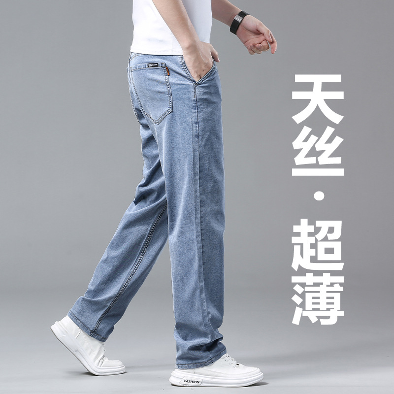 Celana Jeans Sutra Es Musim Panas Celana Panjang Kaki Lebar Longgar Model Baru 2025 Celana Pria Model Tipis Sutra Tipis Kelas Atas Xintang