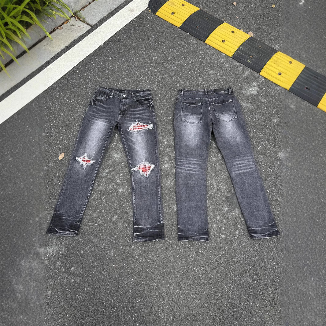 Celana Jeans Model Baru AM Merek Trendi Gaya Amerika Versi Tinggi Celana Panjang Denim Kulit Bocor Santai Dicuci Air