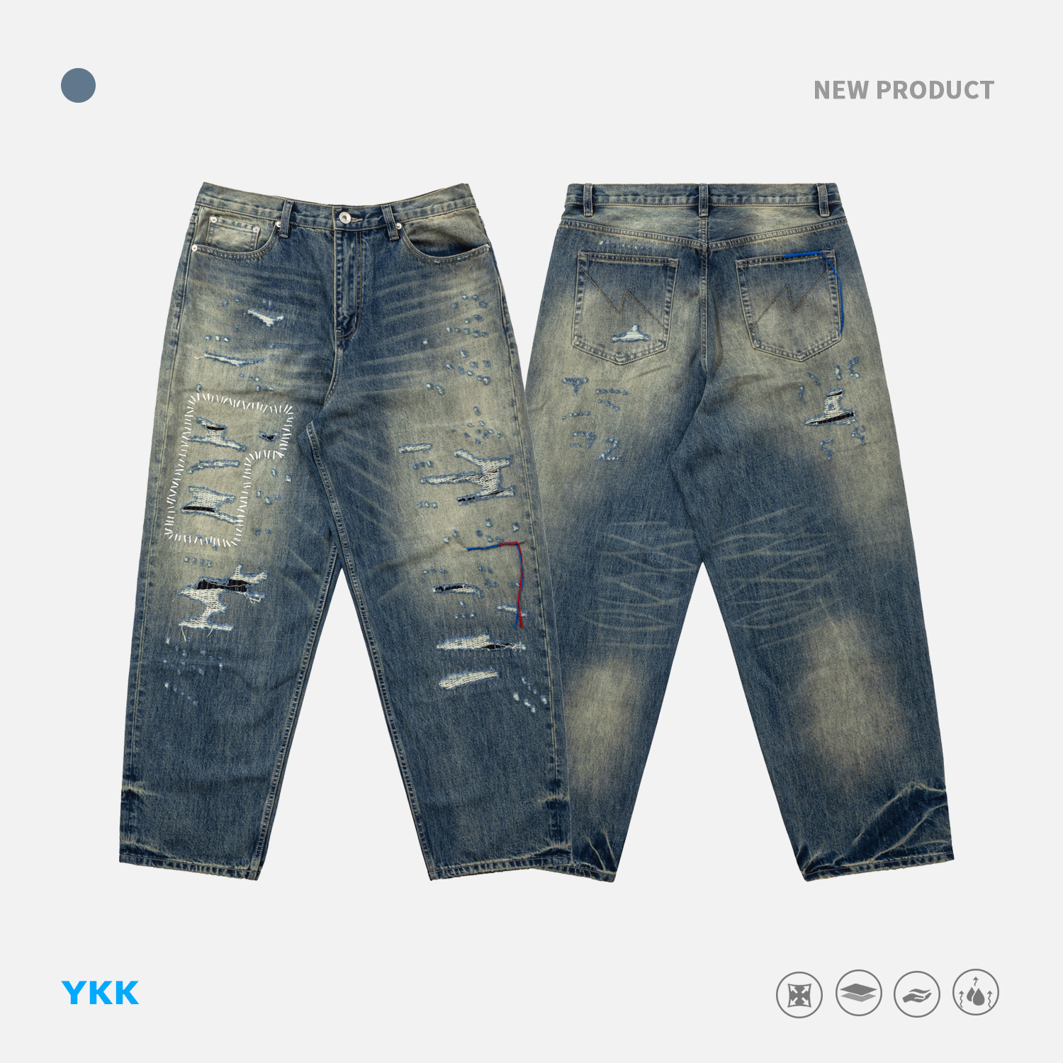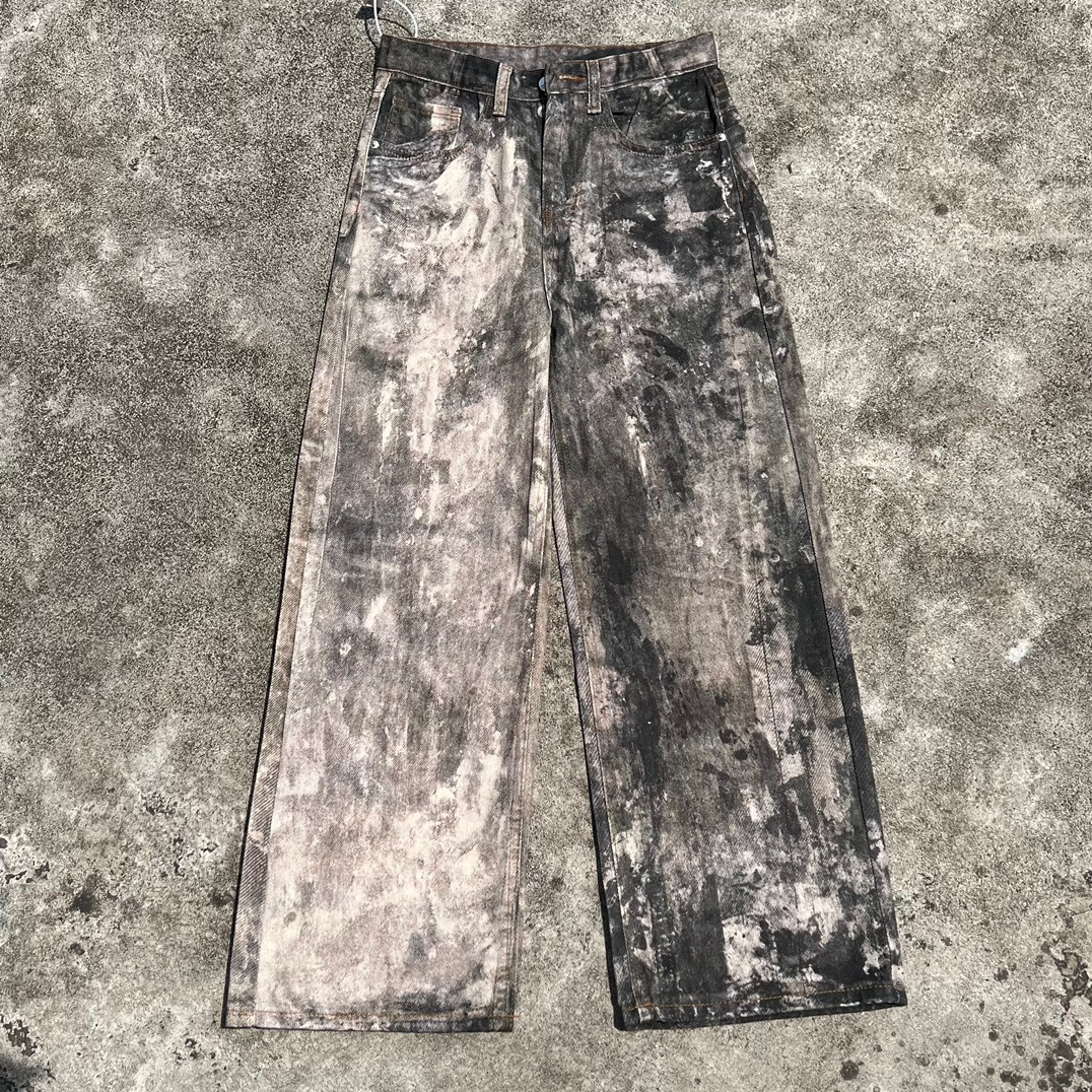 Celana jins tumpuk cipratan warna tua cuci industri berat gaya jalanan Tinggi cocok celana dikirimkan dekonstruction sub-fashion kepribadian