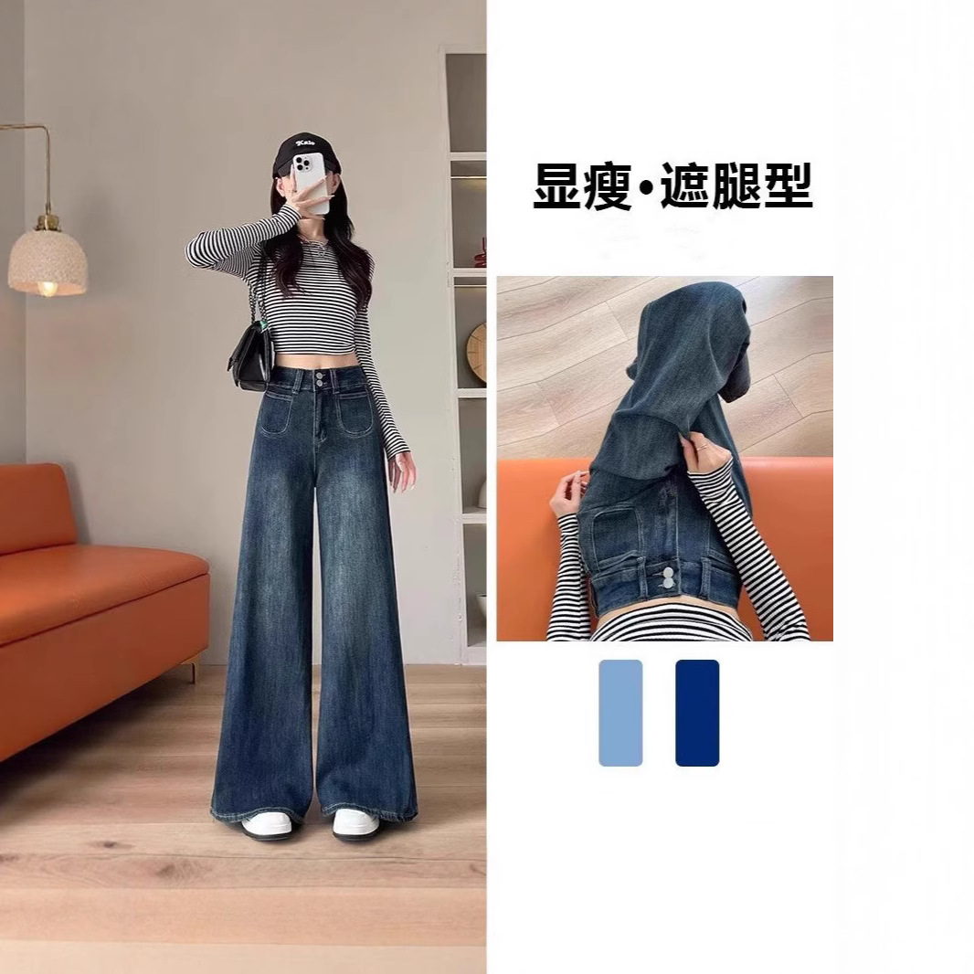 Celana Jeans Kaki Lebar Celana Denim Lurus Mudah Dipadu Padan Terompet Desain Longgar Terlihat Langsing Model Baru Tahun 2025 Musim Panas Wanita