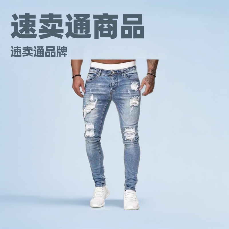 Celana jeans AliExpress Eropa dan Amerika pria, celana jeans Xintang fashion ramping pas badan perdagangan luar negeri