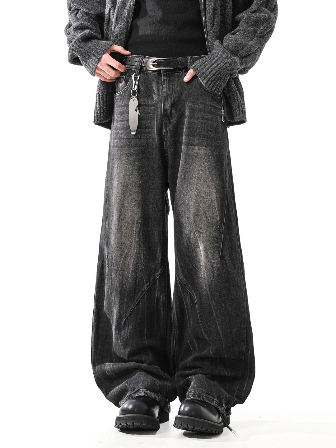 Celana Jeans Warna Hitam Dicuci Retro Jalan Tinggi Gaya Amerika Model Baru Musim Semi dan Musim Panas 2025 Celana Kaki Lebar Pria Merek Trendi