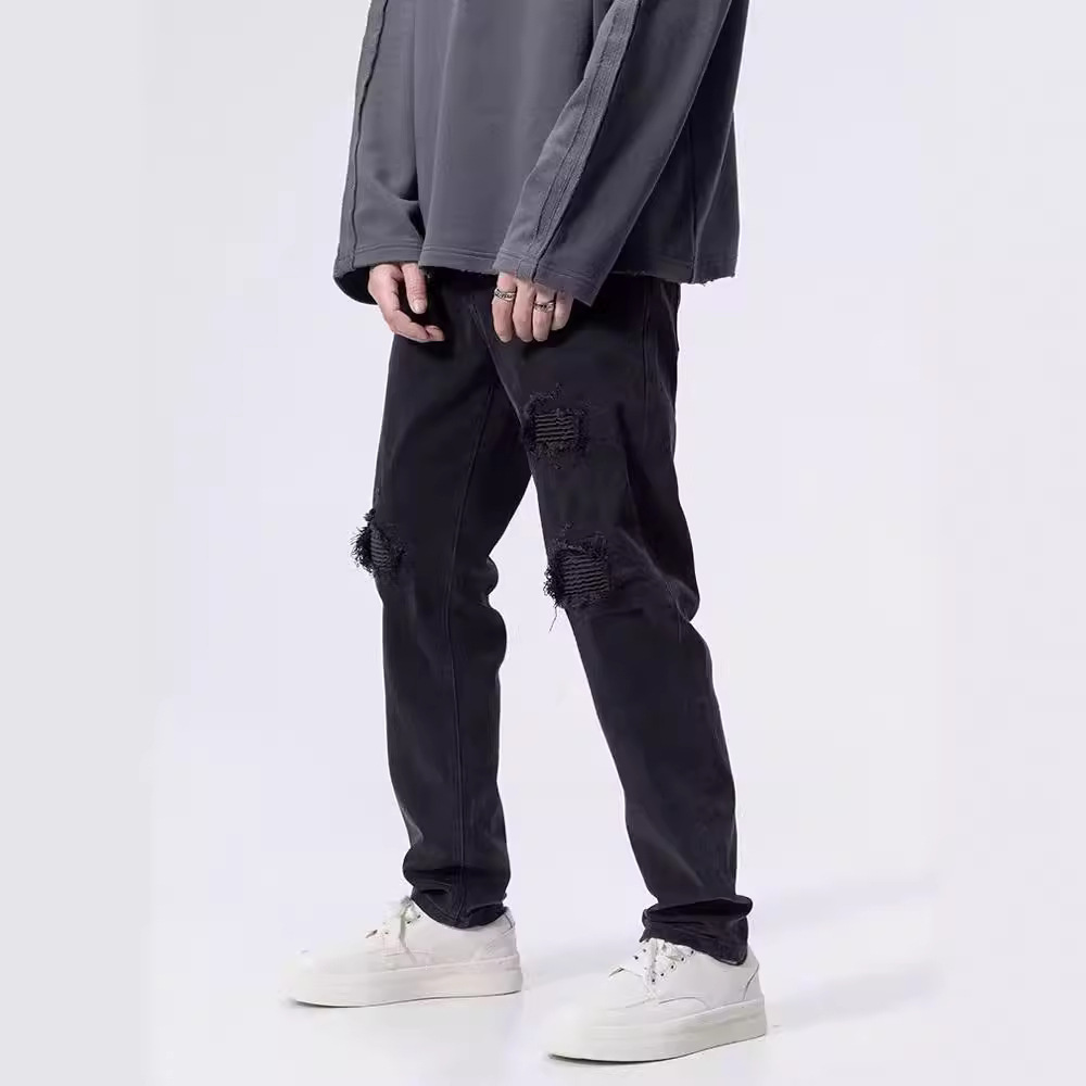 Cross-Border AM American Street Dicuci untuk Membuat Lubang Tua Jeans Pria Musim Semi dan Musim Gugur Lurus Longgar Eropa Amerika High Street Grosir