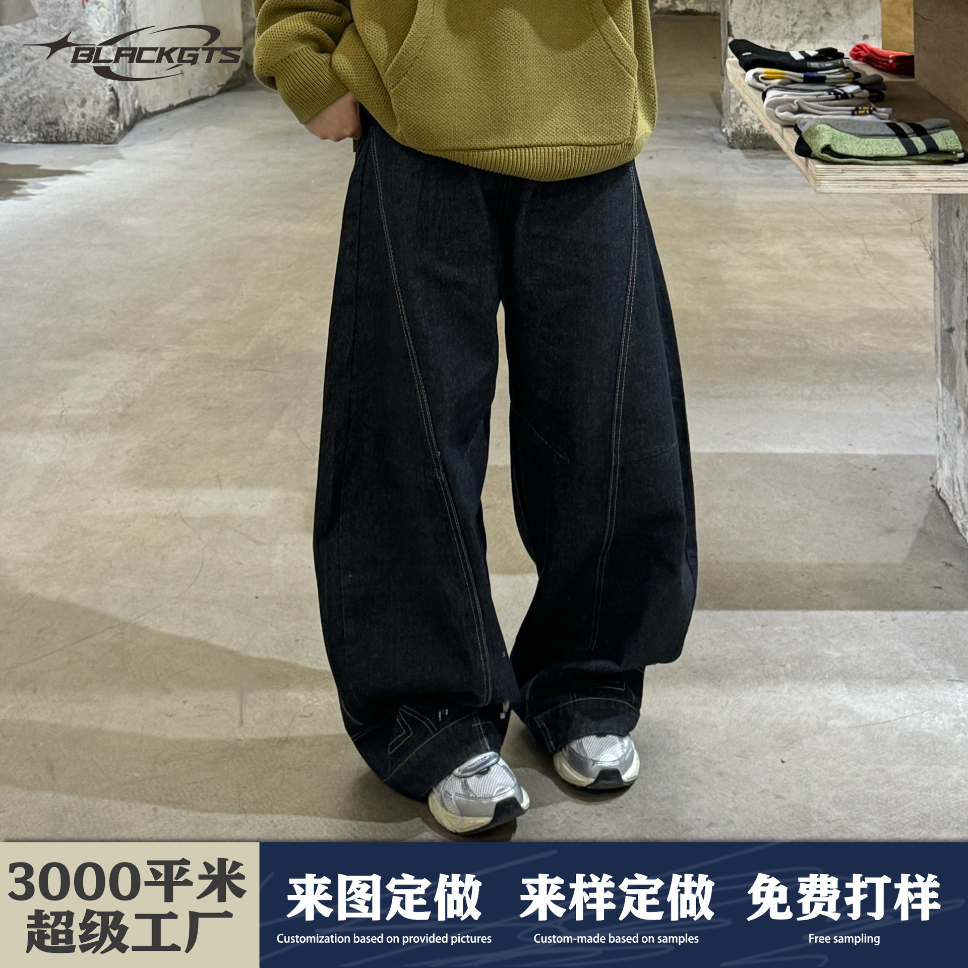Celana Jeans Sambungan Rumbai Jalan Tinggi Amerika Celana Kaki Lebar Langsung Celana Jeans Pria Ukuran Besar Eropa Amerika Khusus Lintas Batas