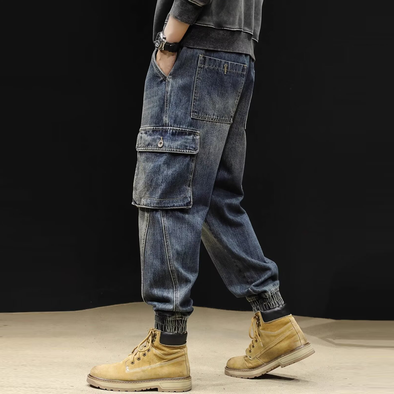 Celana Jeans Kerja Amerika Celana Lurus Longgar Banyak Saku Musim Semi Pria