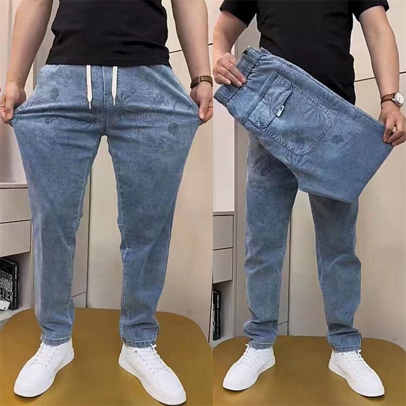 Celana jeans pria musim panas tipis longgar lurus 2025 baru musim panas elastis ramping kasual panjang pelangsing