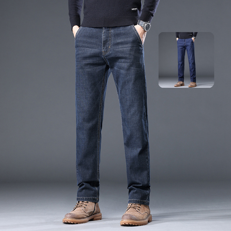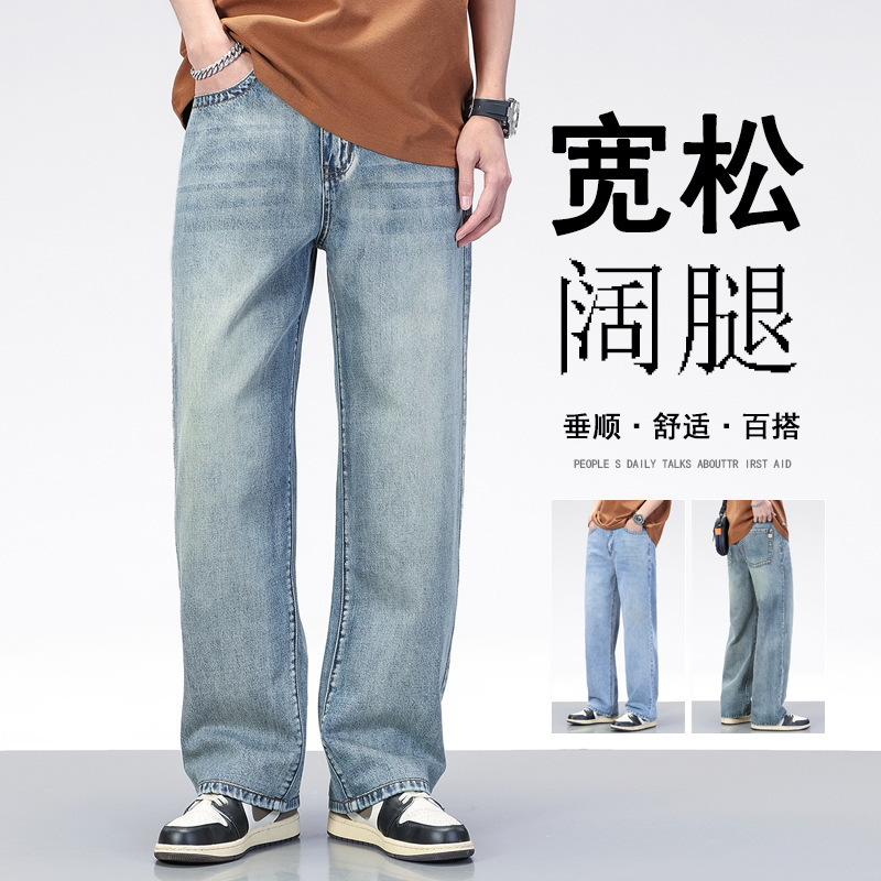 Celana jins lurus longgar untuk pria, celana jins lurus longgar nyaman elastis, celana panjang pria kasual mode pemuda musim gugur dan musim dingin