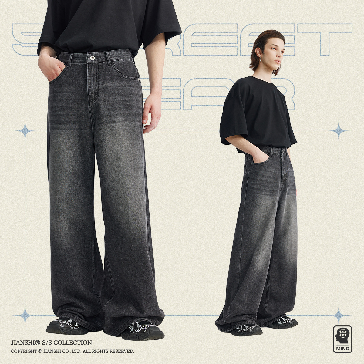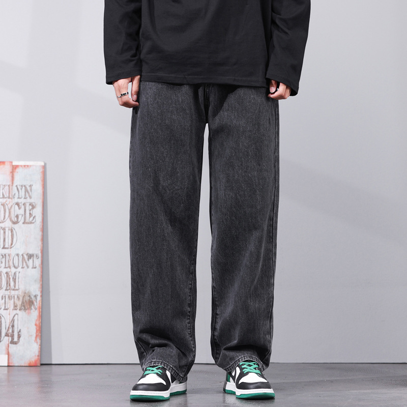 Celana Jeans Kasual Lurus Kaki Lebar Longgar Warna Hitam Trendi Jalanan Retro Jalan Tinggi Gaya Amerika Eropa dan Amerika