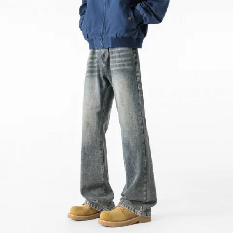 Celana Jeans Tua Dicuci Retro Gaya Amerika Celana Panjang Kaki Lebar Lurus Longgar Niche Desain Merek Trendi Musim Semi Musim Gugur Pria