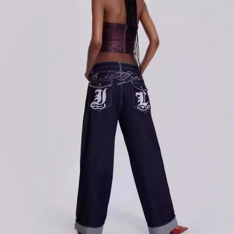 Jeans Lurus Terlihat Langsing Longgar Motif Cetak Jalanan Mudah Dipadu Padan Gadis Hot Milenium Jaded London
