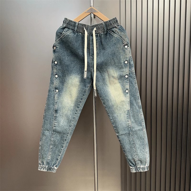 2023 musim semi dan musim gugur baru longgar harem celana panjang terikat pergelangan kaki pria kasual semua cocok jeans trendi musim gugur dan musim dingin