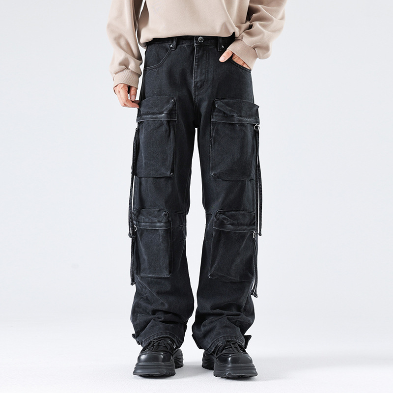 Celana Panjang Lurus Pakaian Kerja Saku Retro Gaya Amerika Model Baru Musim Gugur Celana Jeans Pakaian Kerja Model Lama Model Longgar Sepeda Motor Niche
