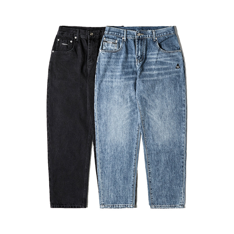 Insight celana Denim pria, jeans gaya Korea baru, celana lurus longgar retro Amerika, celana trendi sederhana untuk pria