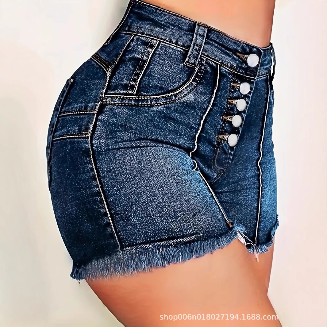 4009 # Model Baru Model Amazon Musim Panas Model Eropa Amerika Elastis Tambah Lubang Celana Pendek Denim Wanita Celana Pendek Wish