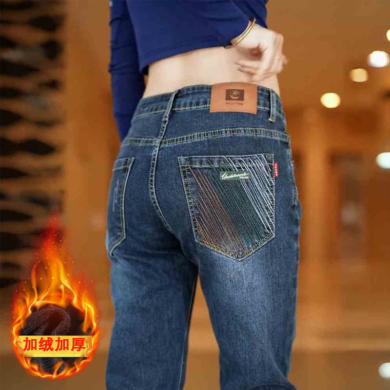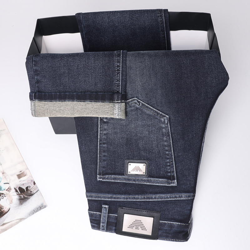 Celana Jeans Model Baru 2025 Celana Elastis Mudah Dipadu Padan Trendi Bordir Lurus Slim Fit Pria Celana Panjang Model Musim Semi Musim Gugur