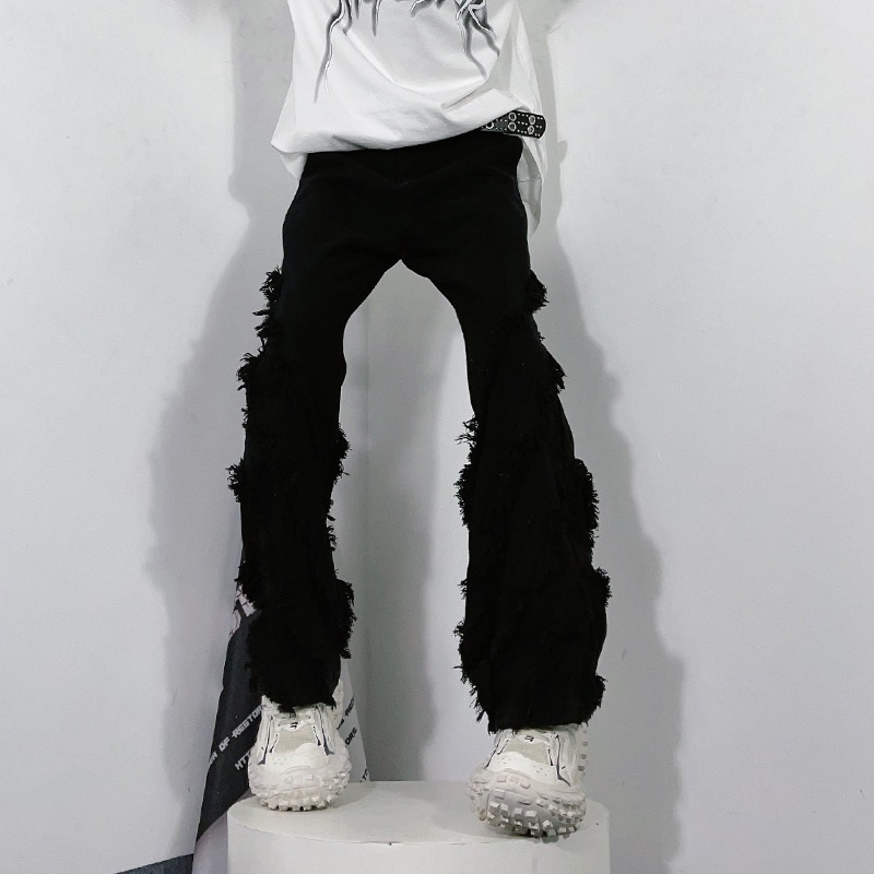 Celana jins pria, celana jins pria, retro, celana panjang, lurus, hiphop, desain struktur, detak jantung,