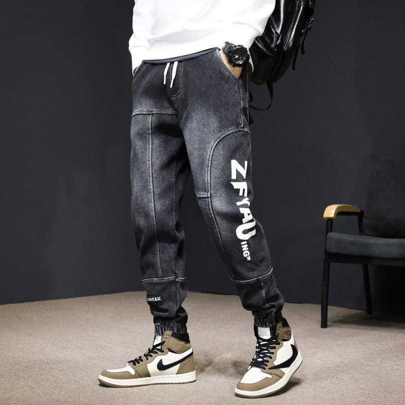 Celana jins gaya Korea kasual, baju kerja Pria harem ikat pergelangan kaki longgar, tebal, bertali musim gugur dan musim dingin