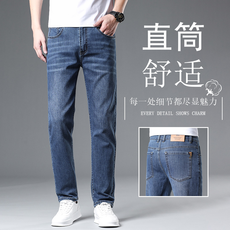 Celana Jeans Model Super Tipis Musim Panas Celana Pria Ukuran Besar Model Baru Kasual Bisnis Elastis Lurus Ramping Pinggang Tinggi Pria