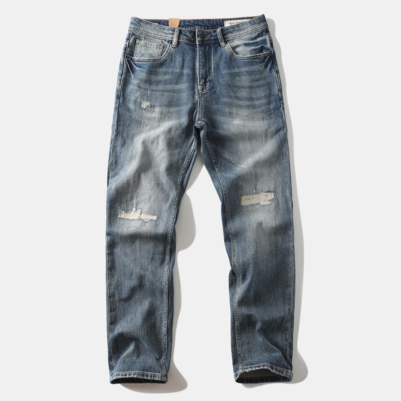 Celana Jeans Telinga Retro Berat Celana Panjang Kasual Pria Pakaian Kerja Lurus Jepang Lama Diperpanjang Elastis Cuci Air