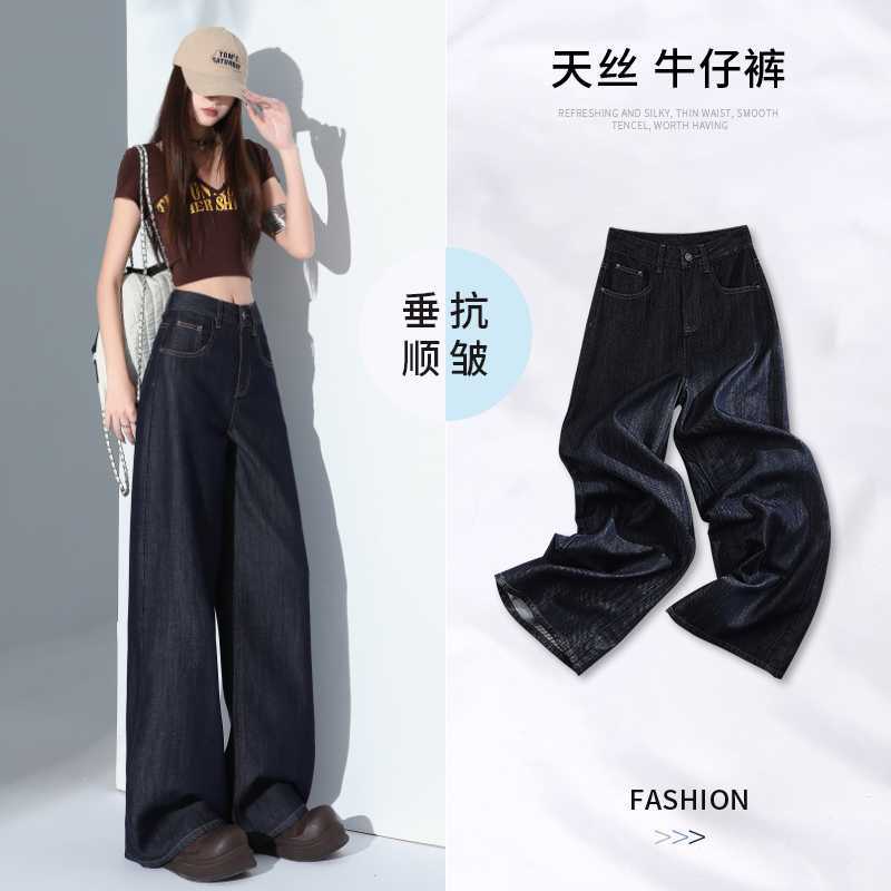 爆款跨境外贸亚马逊欧美高腰女士牛仔裤水洗宽松阔腿大码直筒裤子