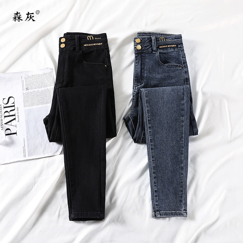 Generation celana jeans kurus wanita, celana pensil pinggang tinggi slim fit regang musim gugur dan musim dingin 2021