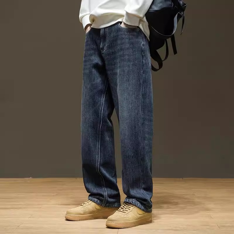 Jeans ukuran besar untuk pria, celana panjang lurus longgar gemuk, celana panjang kaki lebar ekstra besar untuk pria
