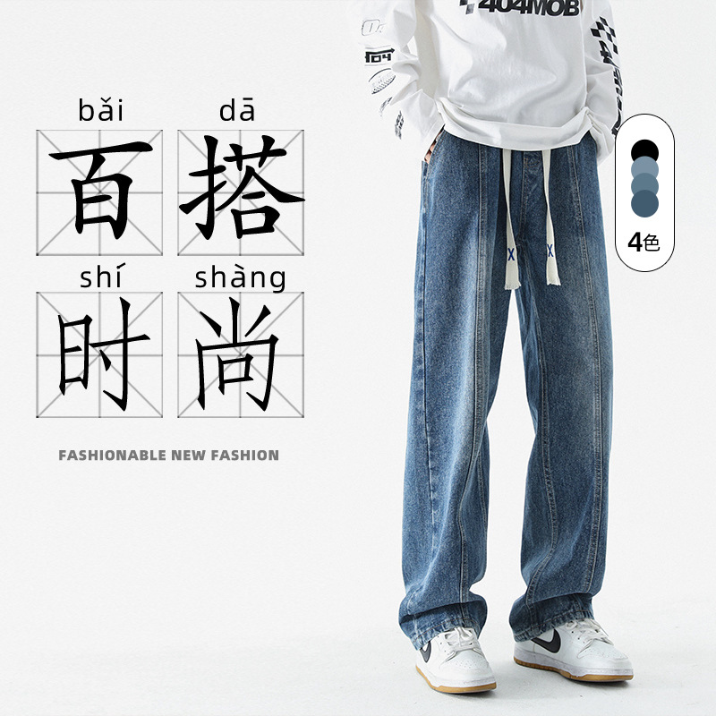 Pakaian Pria Celana Jeans Lurus Longgar Model Baru Musim Semi dan Musim Gugur Celana Panjang Kasual Kaki Lebar Merek Trendi Model Amerika Pria