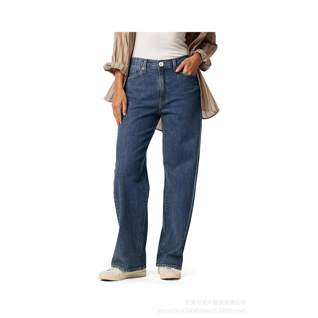 Jeans lurus wanita berpinggang tinggi dengan pinggang elastis, potongan longgar, ramah untuk wanita bertubuh mungil, celana lebar yang menambah tinggi badan, denim modis musim semi dan musim gugur 2024.