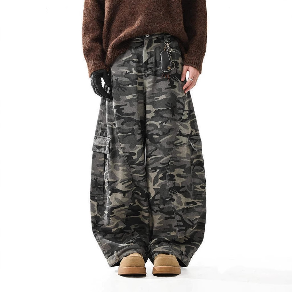 Celana Sabrang Kaki Lebar Kasual Mudah Dipadu Padan Longgar Merek Trendi 2025 Celana Jeans Pakaian Kerja Kamuflase Retro Gaya Amerika Pria Musim Semi dan Musim Gugur