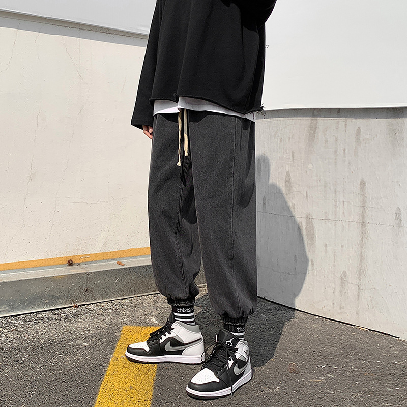 Empat musim gaya Jepang Harajuku trendi merek hip hop jeans pria longgar kurus celana harem ketat kaki ukuran besar pakaian pria