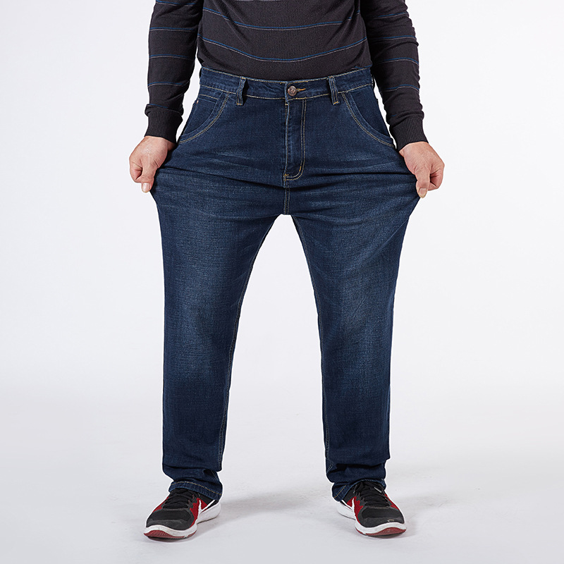 Jeans longgar ukuran plus untuk pria, celana panjang ekstra besar melar bermerek fashion, pakaian pria Gendut, pengiriman satu potong