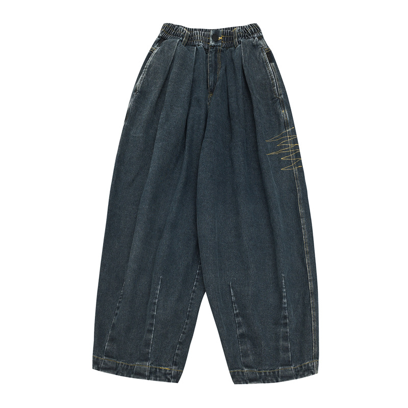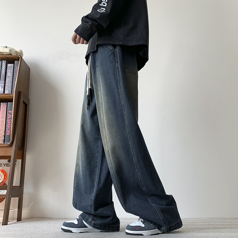 Celana jins dicuci bermerek fashion kasual musim semi dan musim gugur 2023 celana panjang kaki lebar biru longgar retro Jepang baru