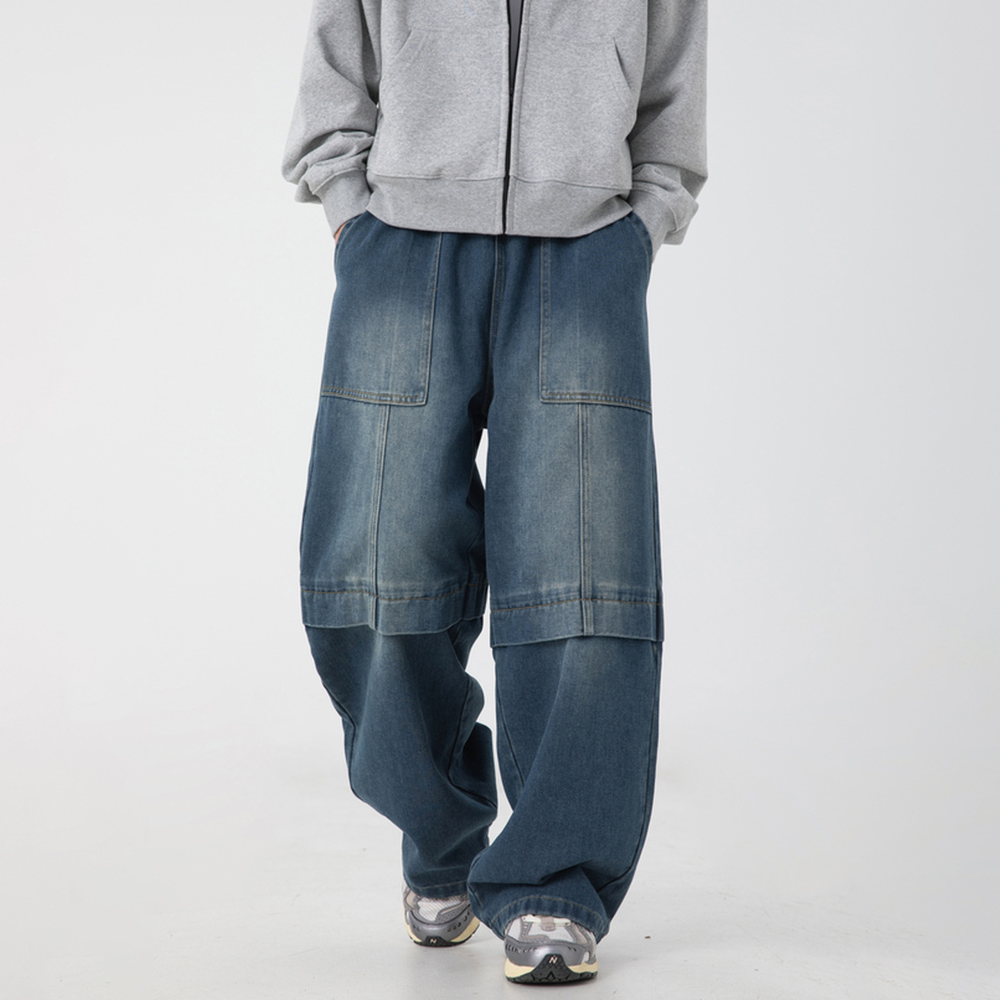 Celana Jeans Warna Biru Tua Gaya Korea Amerika Celana Lurus Longgar Model Baru Ukuran Besar Celana Kaki Lebar Versi Sempit Pinggang Tinggi Trendi