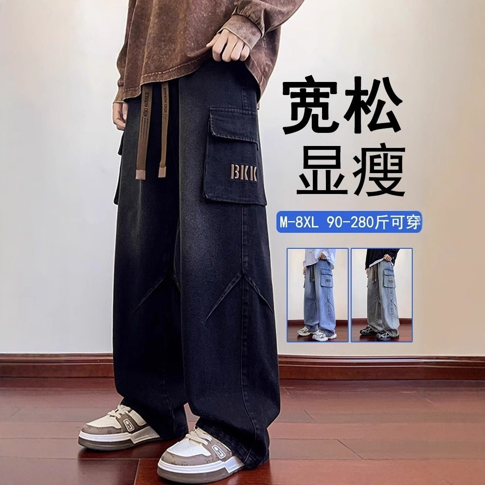 Celana Jeans Kasual Ukuran Besar NASA Model Pria Musim Semi Musim Panas dan Musim Gugur Model Baru Pakaian Kerja Kaki Lebar Tambah Besar Celana Panjang Lurus