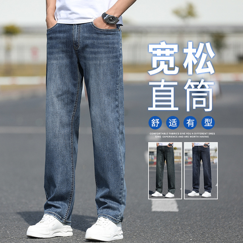 Celana Jeans Pria Berkualitas Tinggi Ukuran Besar Kasual Bisnis Ringan Longgar Modis Netral Trendi Celana Lurus Perjalanan Harian